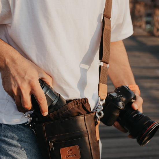 Diese Kameraobjektivtasche ist aus hochwertigem Echtleder gefertigt und verfügt über robuste Nähte und weiche Einsätze – ein langlebiges Design, das garantiert viele Jahre hält.