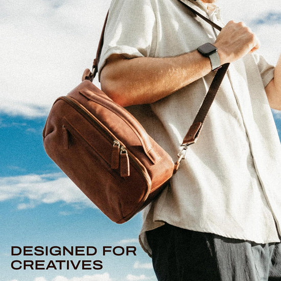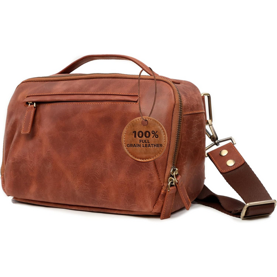 - Vintage-Design: Die Sling-Kameratasche besticht durch ihren klassischen Vollnarbenleder-Look und vereint zeitlosen Stil mit moderner Funktionalität. Damit ist sie die perfekte Fototasche und gleichzeitig die ideale Crossbody-Option für Kameras.