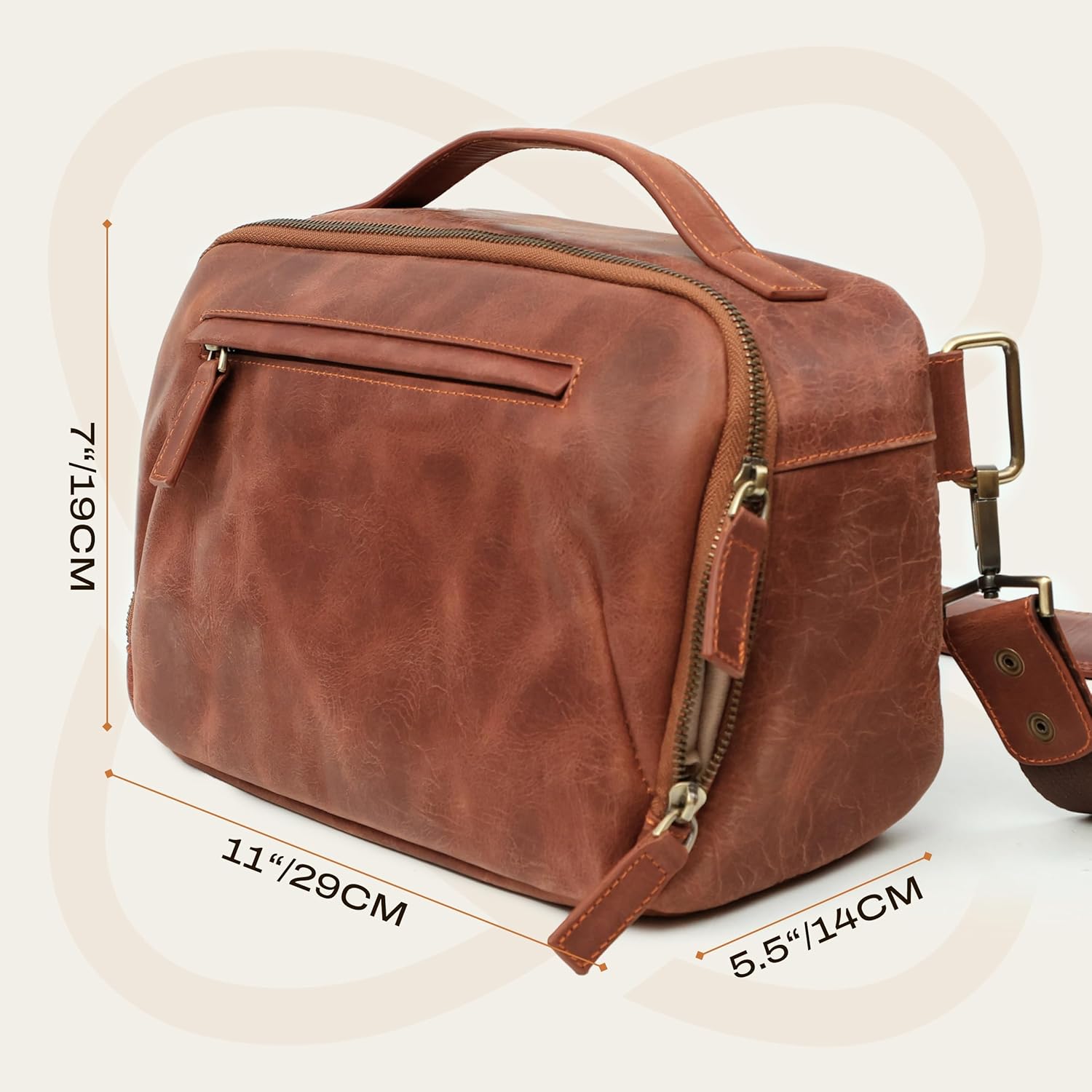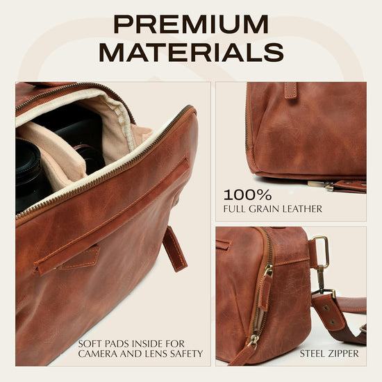 - Premium-Leder: Diese kleine Kameratasche aus 100% Vollnarbenleder, das für seine edle Textur und Stärke bekannt ist, bietet langlebigen Schutz und einen klassischen Look für Ihre DSLR-Kamera.