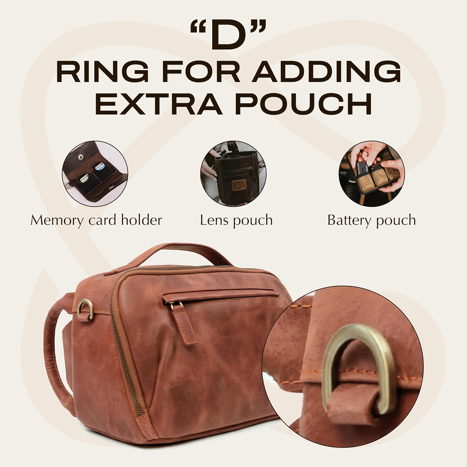 - Durchdachter Stauraum: Die Kameratasche aus Kokosfaserleder bietet praktische Fächer für Speicherkarten und Ladekabel und eignet sich daher ideal, um Kamerazubehör für die Fotografie einfach und bequem zu organisieren.