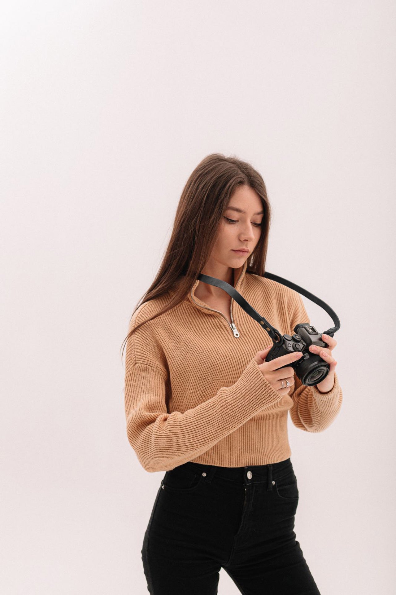 Für alle, die zeitlose und dezente Ästhetik schätzen, bietet unser minimalistischer Kameragurt in Schwarz von Coiro Stil und Funktionalität. Dieser dünne, leichte Gurt ist 103 cm lang und 1,6 cm breit – perfekt für den Alltag, Reisen oder professionelle Fotoshootings. Jeder Gurt verfügt über zwei abnehmbare Sprengringpuffer und eine schützende Lederrückseite zum Schutz Ihrer Kamera.