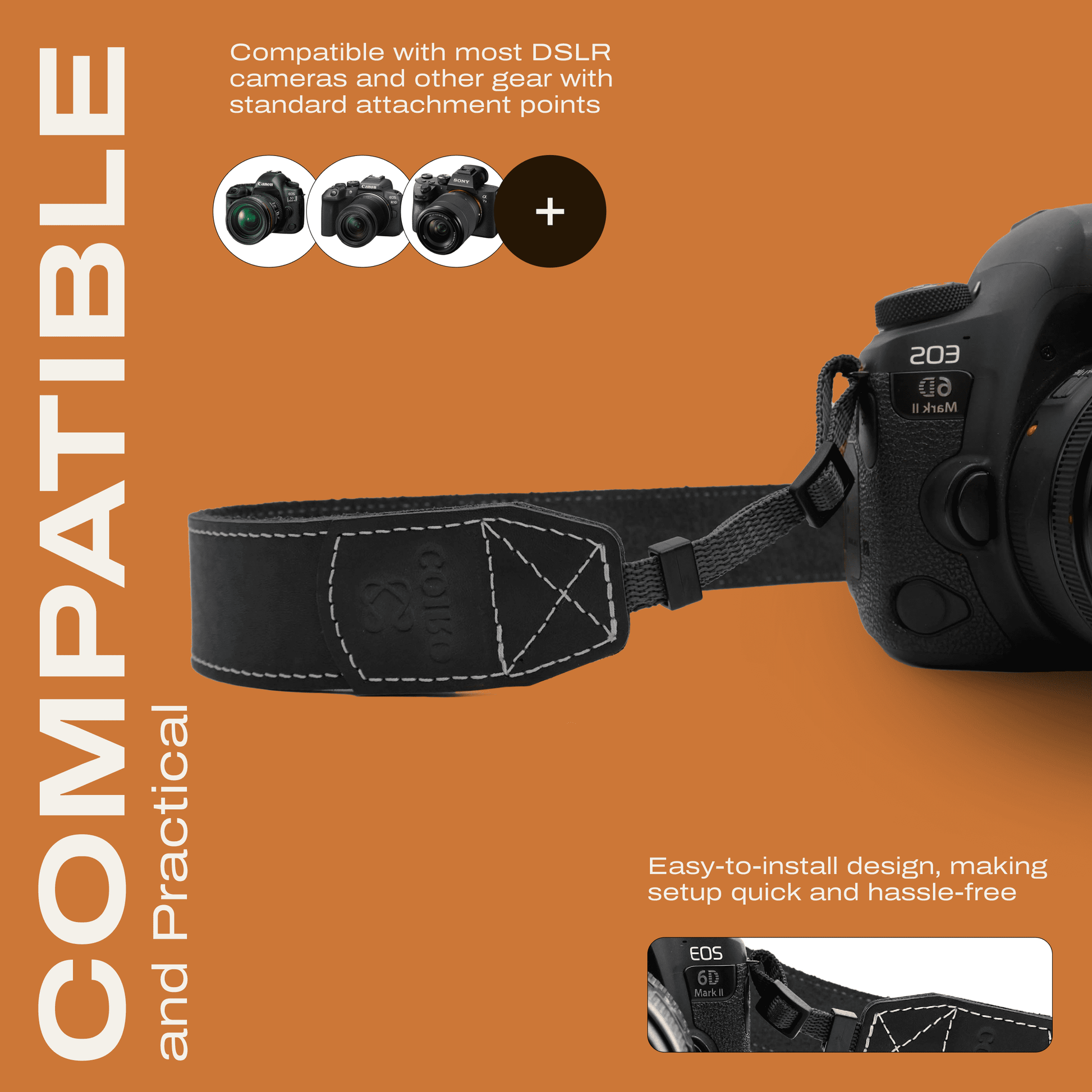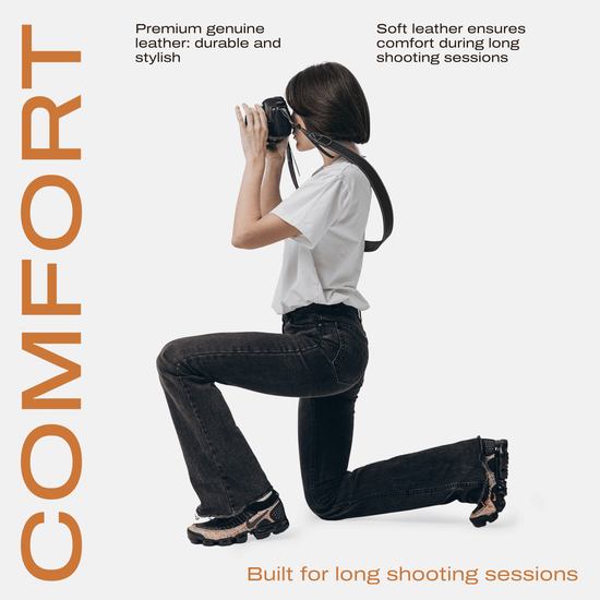Dieser einzigartige Kameragurt wurde entwickelt, um sowohl das Aussehen Ihrer Kamera als auch Ihr eigenes zu verbessern und hebt sich von der Masse ab. So wird jedes Fotoshooting zu einem selbstbewussten, komfortablen und stilvollen Erlebnis.