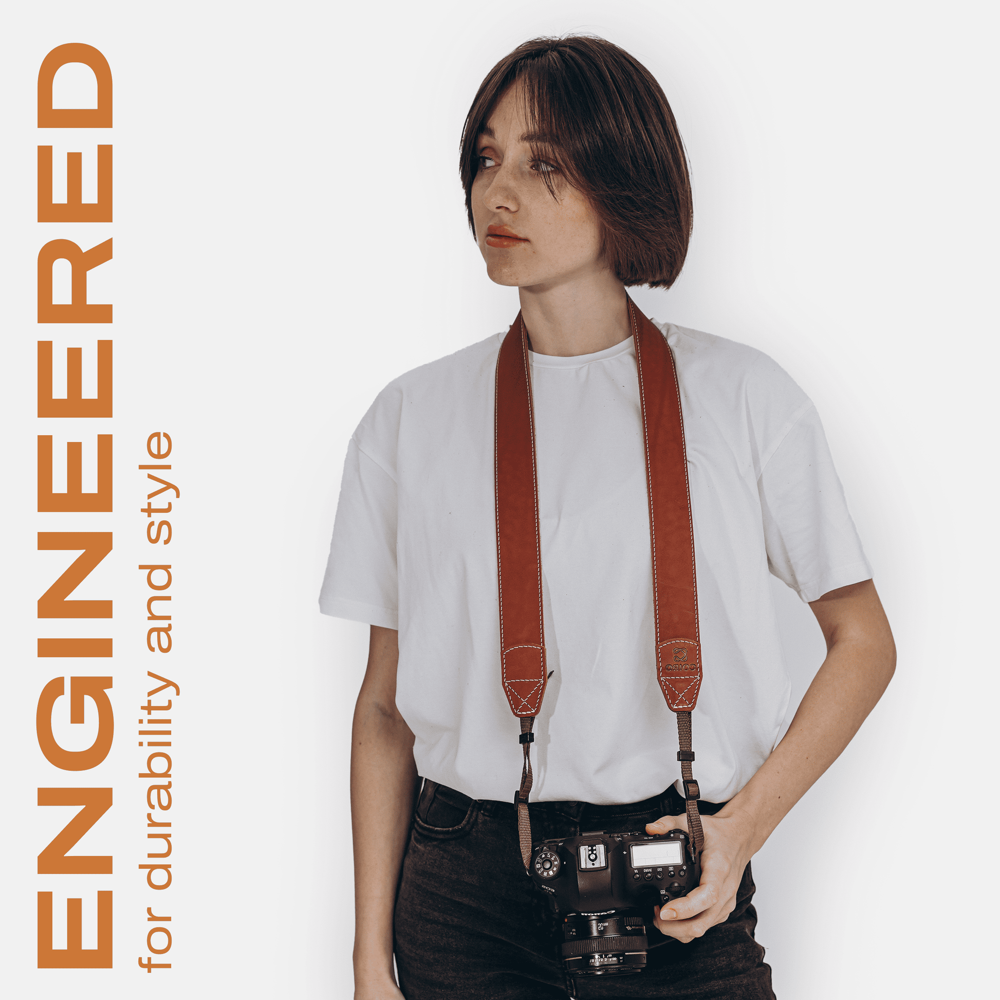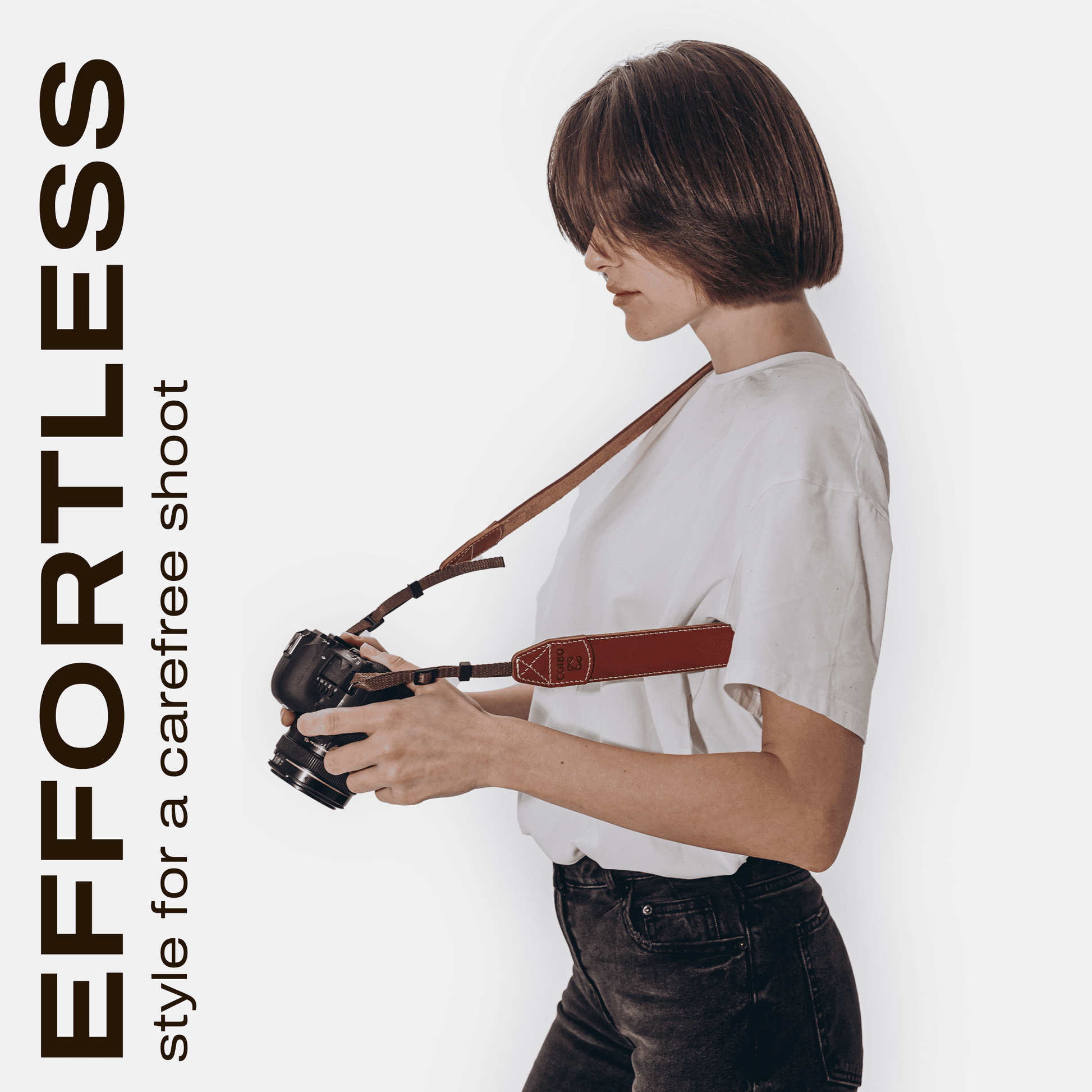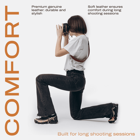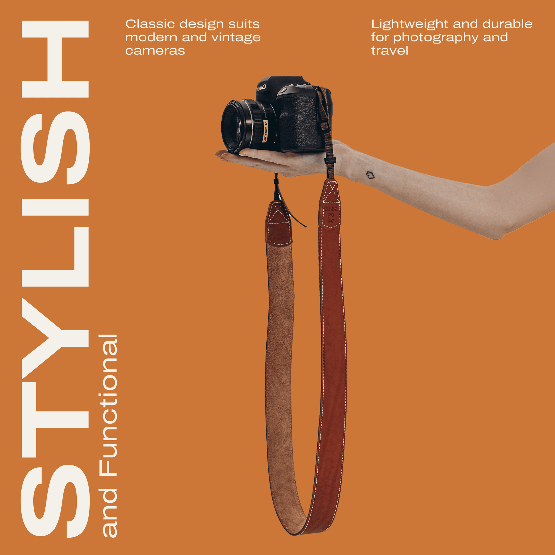 Mit ihrem klassischen Design und der verstellbaren Länge bietet sie optimalen Tragekomfort – ob um den Hals oder quer über die Schulter – und sorgt so für sicheren Halt bei jedem Shooting. Dank ihres Vintage-inspirierten Designs und der hochwertigen Materialien vereint sie zeitlose Eleganz mit moderner Funktionalität.