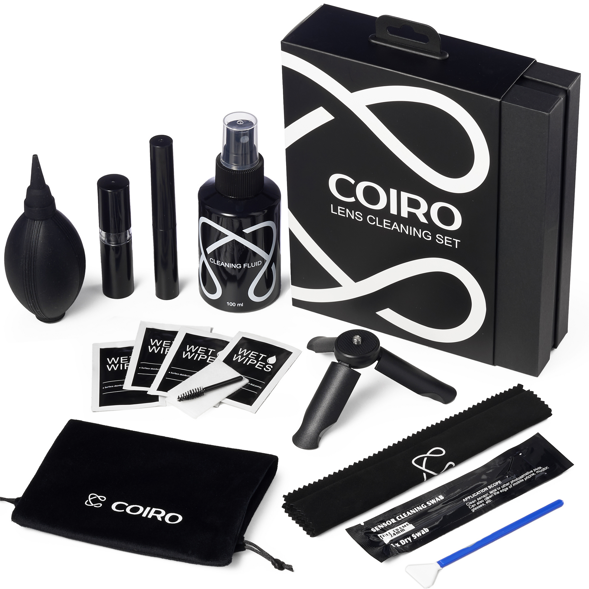Mit dem COIRO 9-in-1 Kameraobjektiv-Reinigungsset halten Sie Ihre Ausrüstung makellos sauber – die optimale Lösung für DSLR- und spiegellose Kameras sowie empfindliche Elektronik. Das Set wird in einer eleganten Geschenkbox geliefert und enthält alles, was Fotografen für die Pflege von Objektiven und Sensoren benötigen.