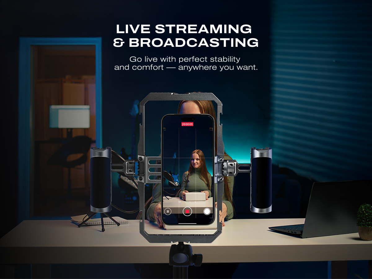 Ruhige und stabile Aufnahmen – Dank der zwei Griffe haben Sie die perfekte Balance und Kontrolle, sodass verwackelte Videos der Vergangenheit angehören.